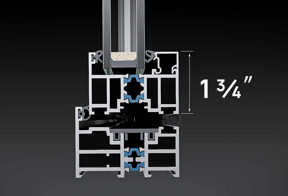 Slim Face WidthThe visible face width of the mullion is only 1 3/4 in.(45mm)